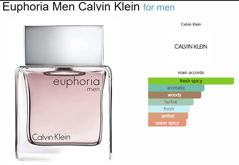 Euphoria Men by Calvin Klein is a bold, sophisticated fragrance with an irresistible blend of spicy ginger and pepper at the top, herbal aromatic notes at the heart, and a warm amber-suede finish. It’s a confident and modern scent for the man who stands out effortlessly.