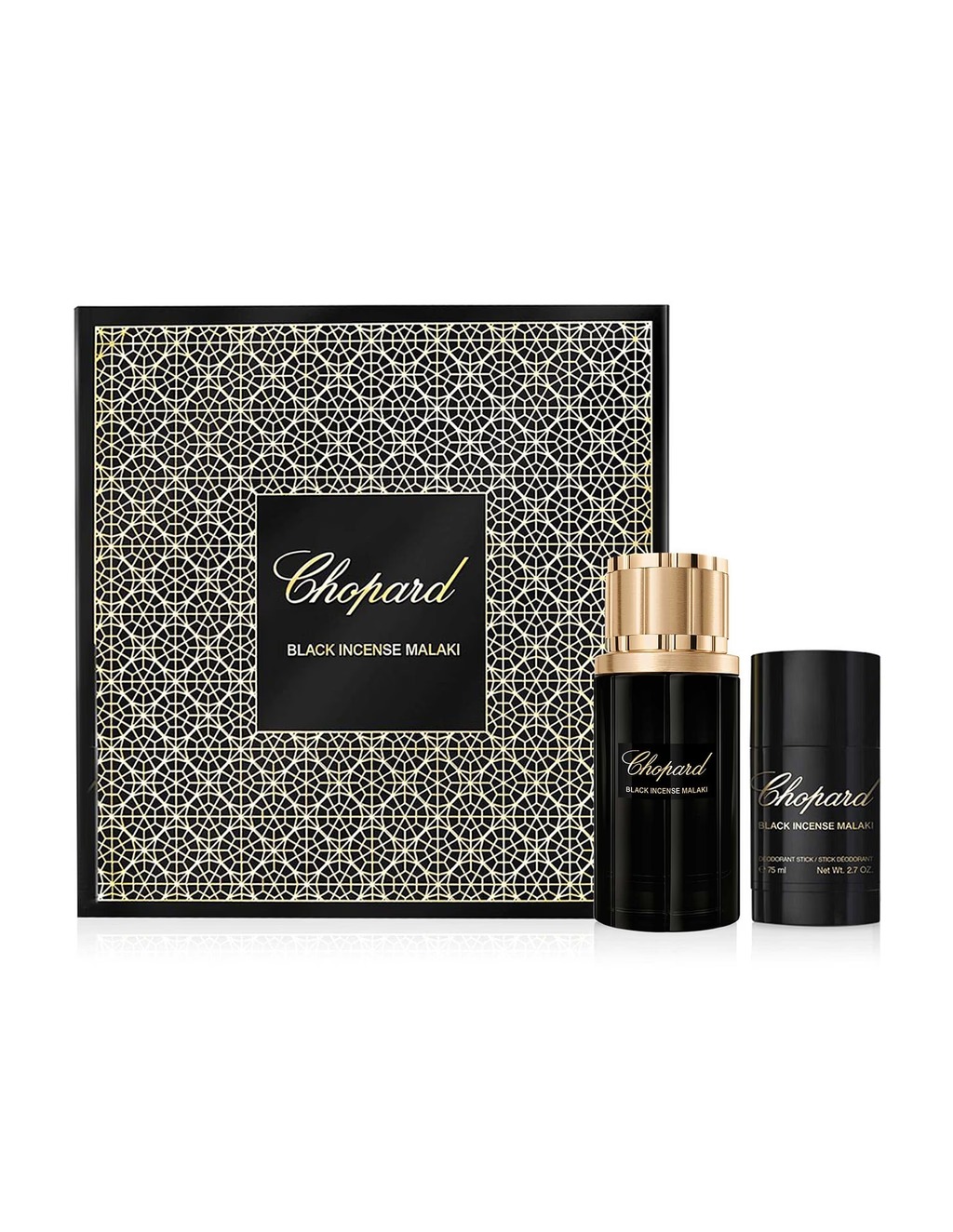 The Chopard Black Incense Malaki Gift Set (2 Pieces) delivers a bold and mysterious fragrance experience. Black Incense Malaki Eau de Parfum blends smoky and spicy notes with a deep heart of oud, cedarwood, and leather, layered over a warm base of amber and tonka bean. Luxurious and intense, this oriental-woody scent is perfectly suited for both men and women who enjoy deep, resinous fragrances.